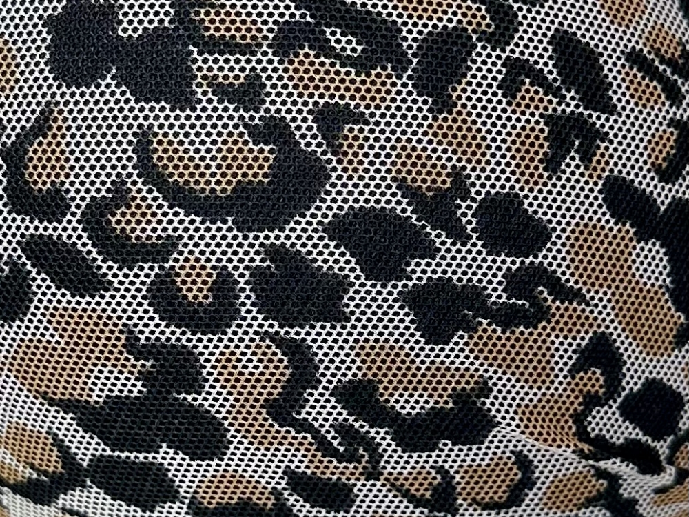Conjunto básico em tule estampado forrado. Soutien com aro e com bojo pre moldado, detalhes em Strappy Bra super estiloso. Corpo duplo com acabamento em elástico simples. Tule macio e com estampas em animal print. Acompanha um fio dental simples com as laterais mais larguinhas e acabamento em viés fino macio. Calcinha toda forrada. Forro íntimo em 100% algodão.